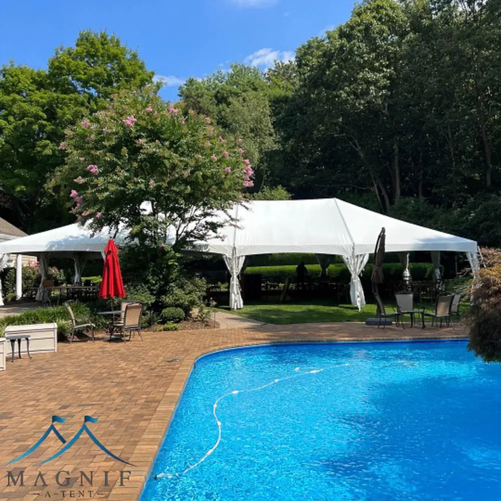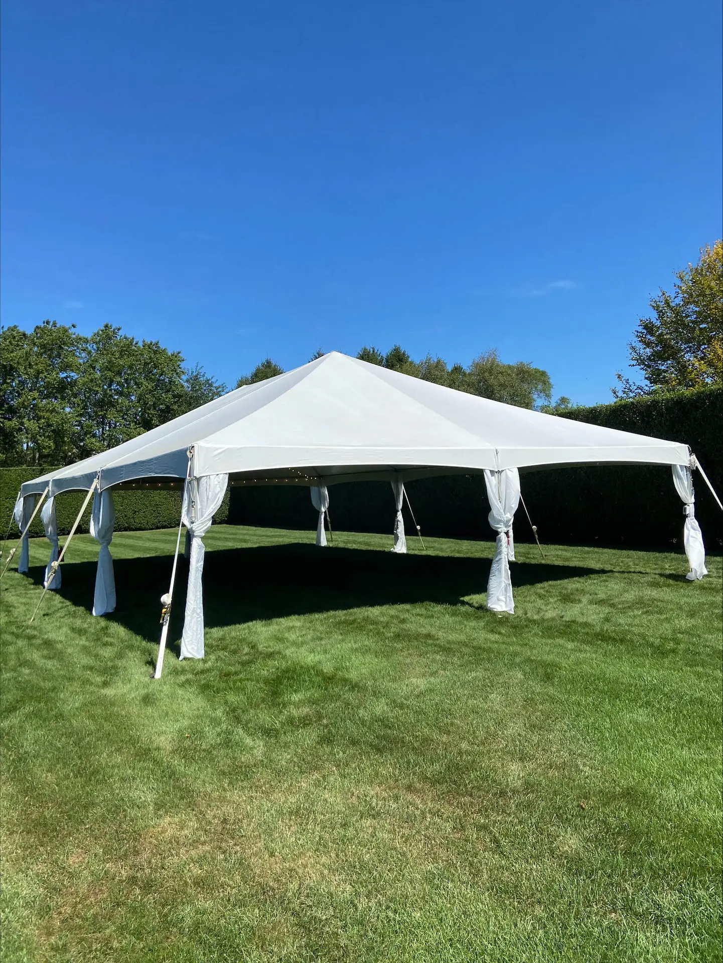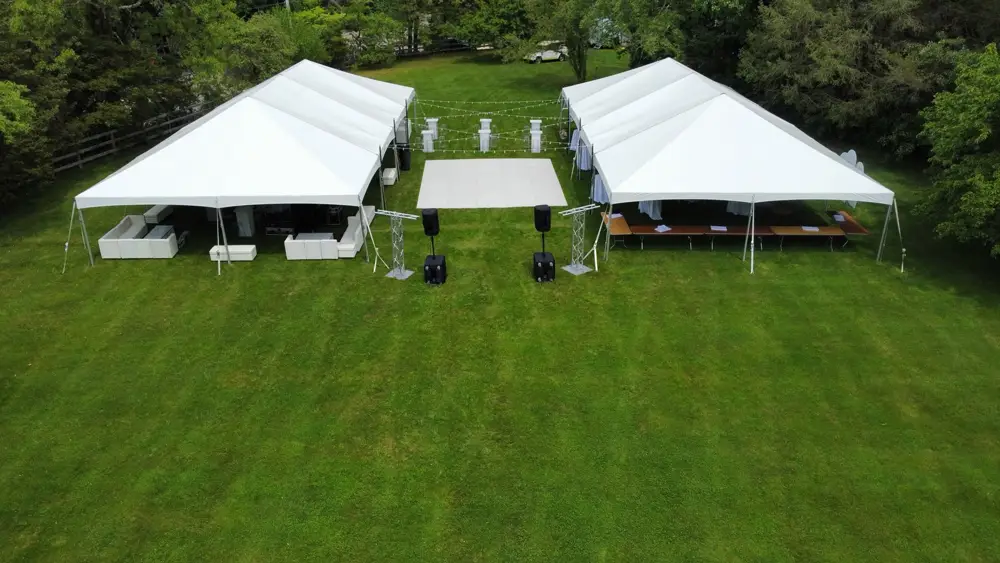 The Jumbotrac Lite features kedered tops and optional walls that slide through channels in the frame without the need for lace lines.. The frame system utilizes a reinforced, 2” West Coast frame platform, which provides a clean, beautiful, and elegant appearance that is desired by event professionals. This frame system is also known for its ability to withstand the unpredictable weather conditions that are common in the northeast.