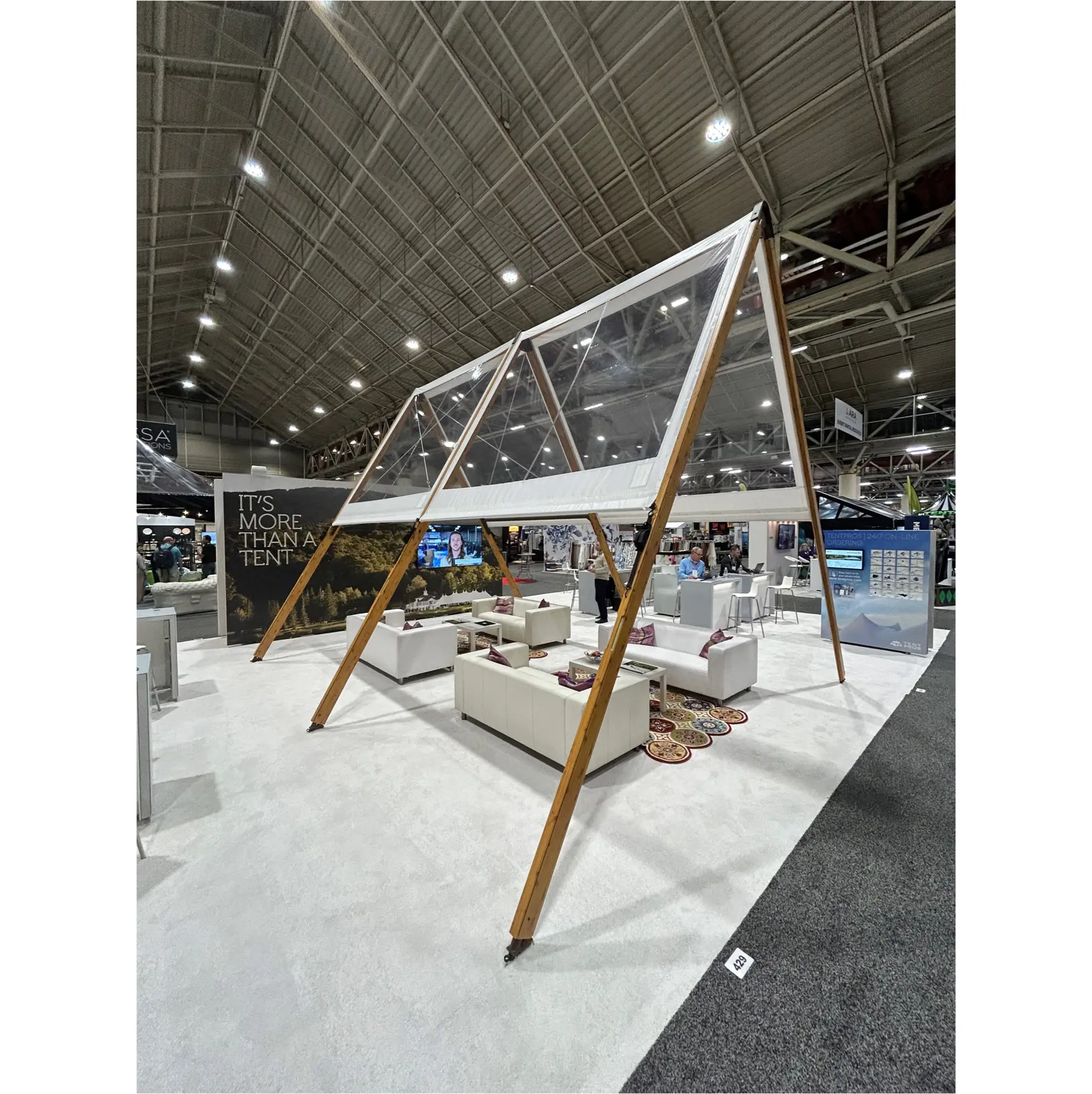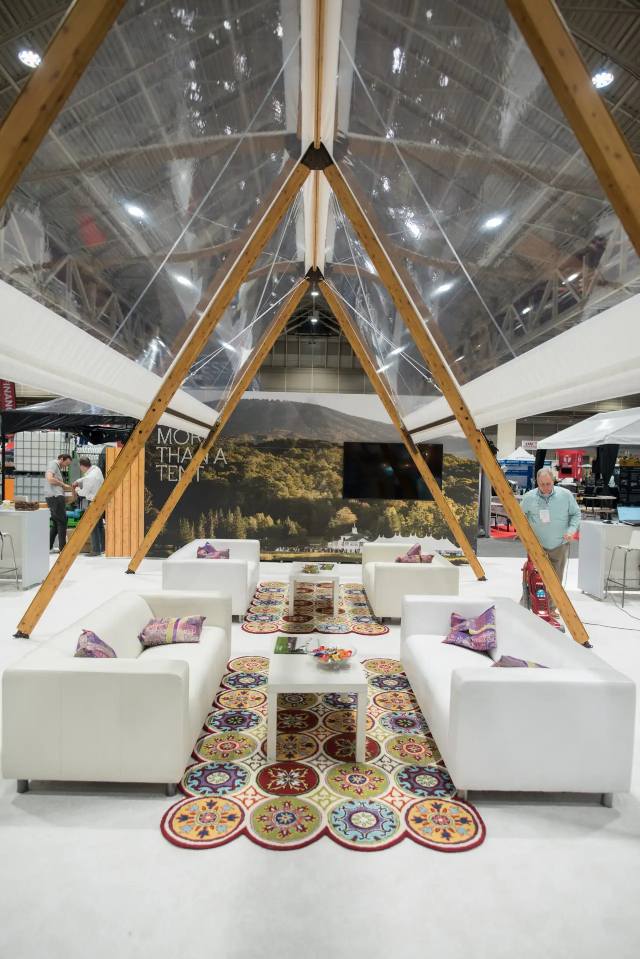 The Adena™ is perfect for intimate garden to table events, unique entryways, wedding ceremonies, and more. Inspired by the modernist movement of the 1950’s, the Adena captures the classic visual lines of the traditional European Grubenhaus with modern flair. Available in Graincoated™ timber finishing, with clear tops or Sailcloth vinyl. The shape of this tent looks different from everything you’ve ever seen.